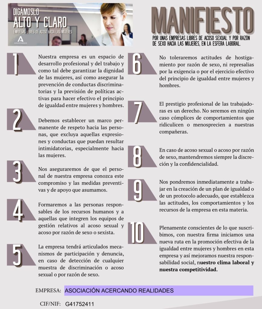 ACRE se adhiere al manifiesto de empresas libres de acoso hacia las mujeres